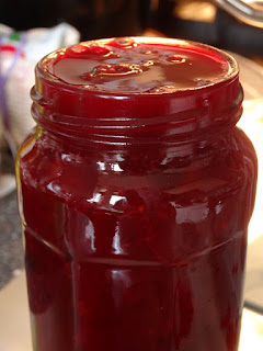 De verse cranberries waren in de aanbieding: doosjes van 250 gram voor een euro. Die kon ik niet laten liggen. Sinds de dochters bij mijn zus cranberry compote met paté aten, zijn ze gek op cranberries. Maar wat te doen met 750 gram? Dat was niet moeilijk: Cranberry-Jam!